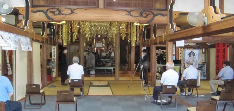 20210801入盆供養toeiji2021年8月1日読了時間: 1分毎年8月1日は早朝より地元のお檀家さんがお詣りに本堂にいらっしゃいます。 そして例年ですとお檀家さんの参列の元、8:00から入盆供養を修行するのですが、新型コロナウィルス感染症対策の為に、総代さん4名のみの参列で修行いたしました。 弟子である、息子と甥2人も参列しました。